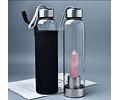 La Botella Cuarzo Rosa, no solo actúa en tu cuerpo, sino también en mente y en tu alma. Ideal para atraer Amor propio, Paz incondicional y Amor infinito. Cada gema lleva una vibración única y por lo tanto, afecta el agua de una manera única.