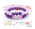 Dúo de Brazaletes en Amatista y Cuarzo Rosa Naturales, elaborados en hilo elástico, que te traerá bienestar a cuerpo, mente y espíritu. Ideal para equilibrar los Chakras del Corazón y el de la Coronilla.